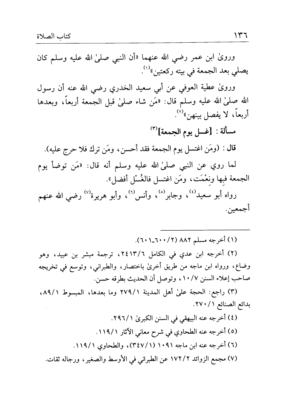 وروى عطية العوفي عن أبي سعيد الخدري رضي الله عنه أن رسول الله صلى الله عليه وسلم قال: "من شاء صلى قبل الجمعة أربعًا، وبعدها أربعًا، لا يفصل بينهن".