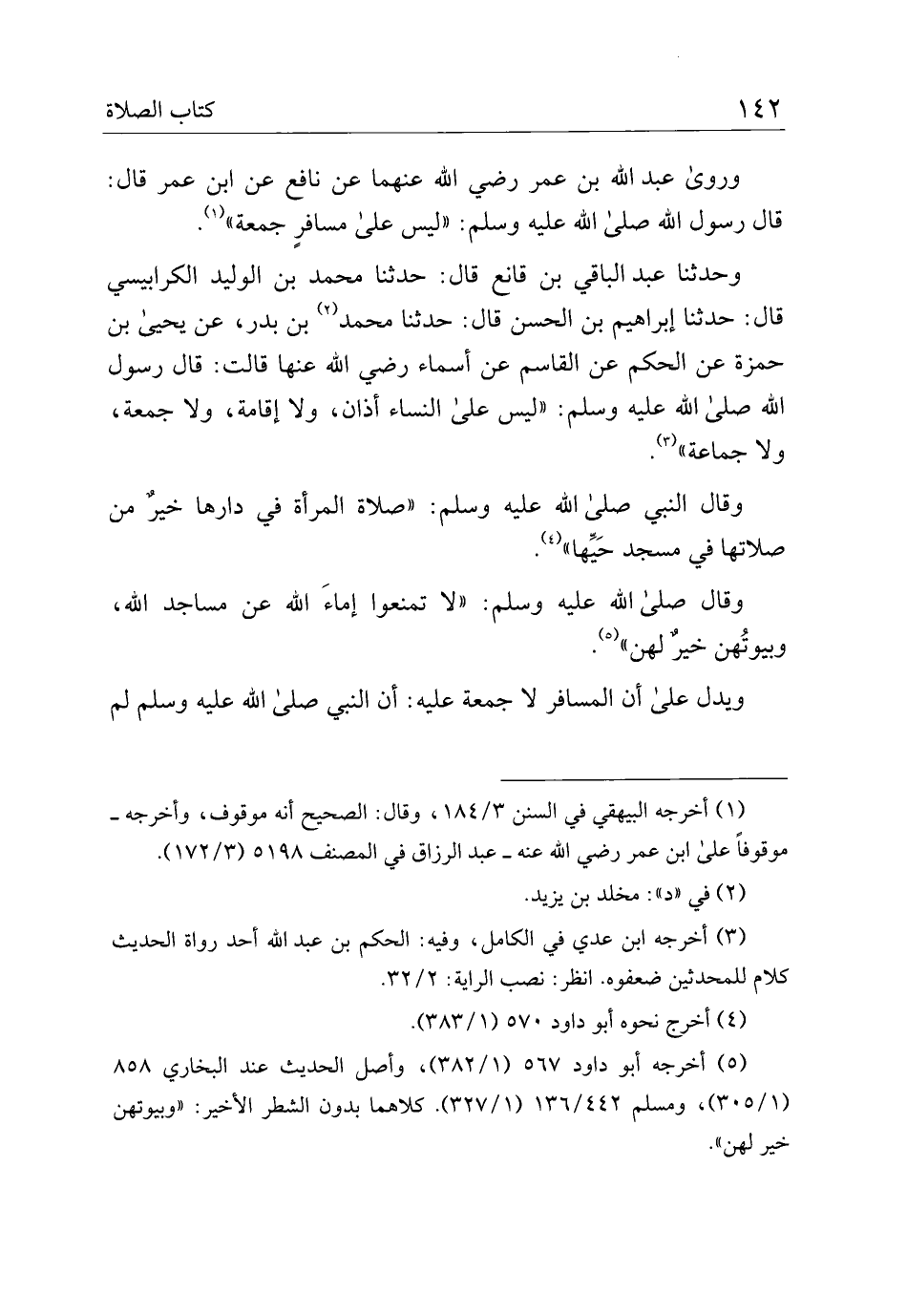 وروى عبد الله بن عمر رضي الله عنهما عن نافع عن ابن عمر قال قال رسول الله صلى الله عليه وسلم: "ليس على مسافر جمعة".