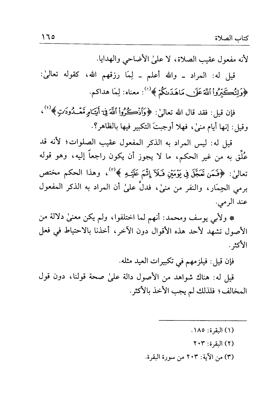 قيل له: ليس لمراد به الذكر المفعول عقيب الصلوات؛ لأنه قد علق به من غير الحكم، ما لا يجوز ان يكون راجعًا إليه، وهو قوله تعالى: {فمن تعجل في يومين فلا إثم عليه}، وهذا الحكم مختص برمي الجمار، والنفر من منى، فدل على أن المارد به الذكر المفعول عند الرمي.