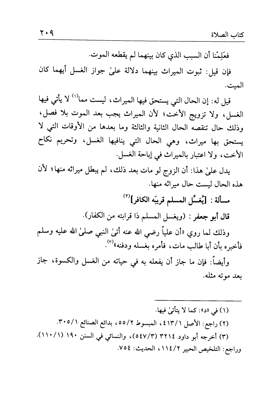 قام أبو جعفر: (ويغسل المسلم ذا قرابته من الكفار).