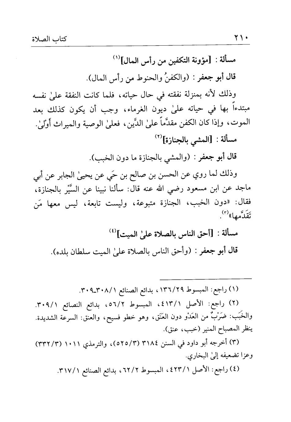 قال أبو جعفر: (والكفن والحنوط من رأس المال).