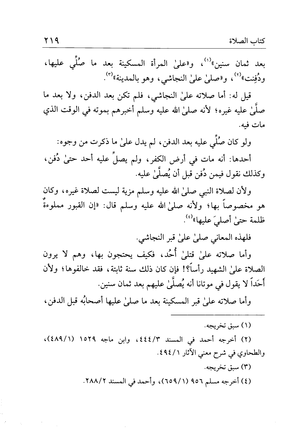 بعد ثمان سنين"، و "على المرأة المسكينة بعد ما صلى عليها، ودفنت"، و "صلى على النجاشي، وهو بالمدينة".