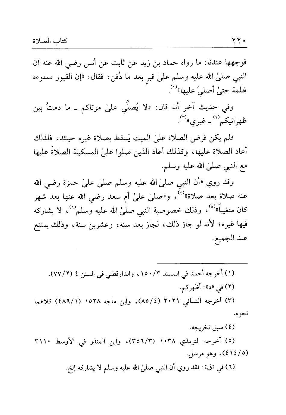 وقد روي "أن البي صلى الله عليه وسلم صلى على حمزة رضي الله عنه صلاة بعد صلاة"، و "صلى على أم سعد رضي الله عنها بعد شهر كان متغيبًا"، وذلك خصوصية النبي صلى الله عليه وسلم، لا يشاركه فيها غيره؛ لأنه لو جاز ذلك، لجاز بعد سنة، وعشرين سنة، وذلك يمتنع عند الجميع.
