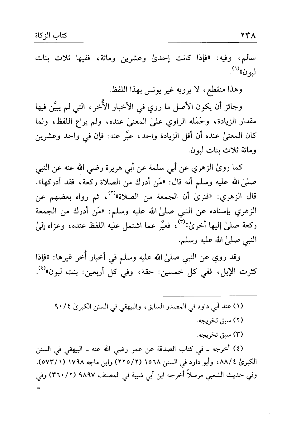 وقد روي عن النبي صلى الله عليه وسلم في أخبار أخر غيرها: "فإذا كثرت الإبل، ففي كل خمسين: حقة، وفي كل أربعين: بنت لبون".