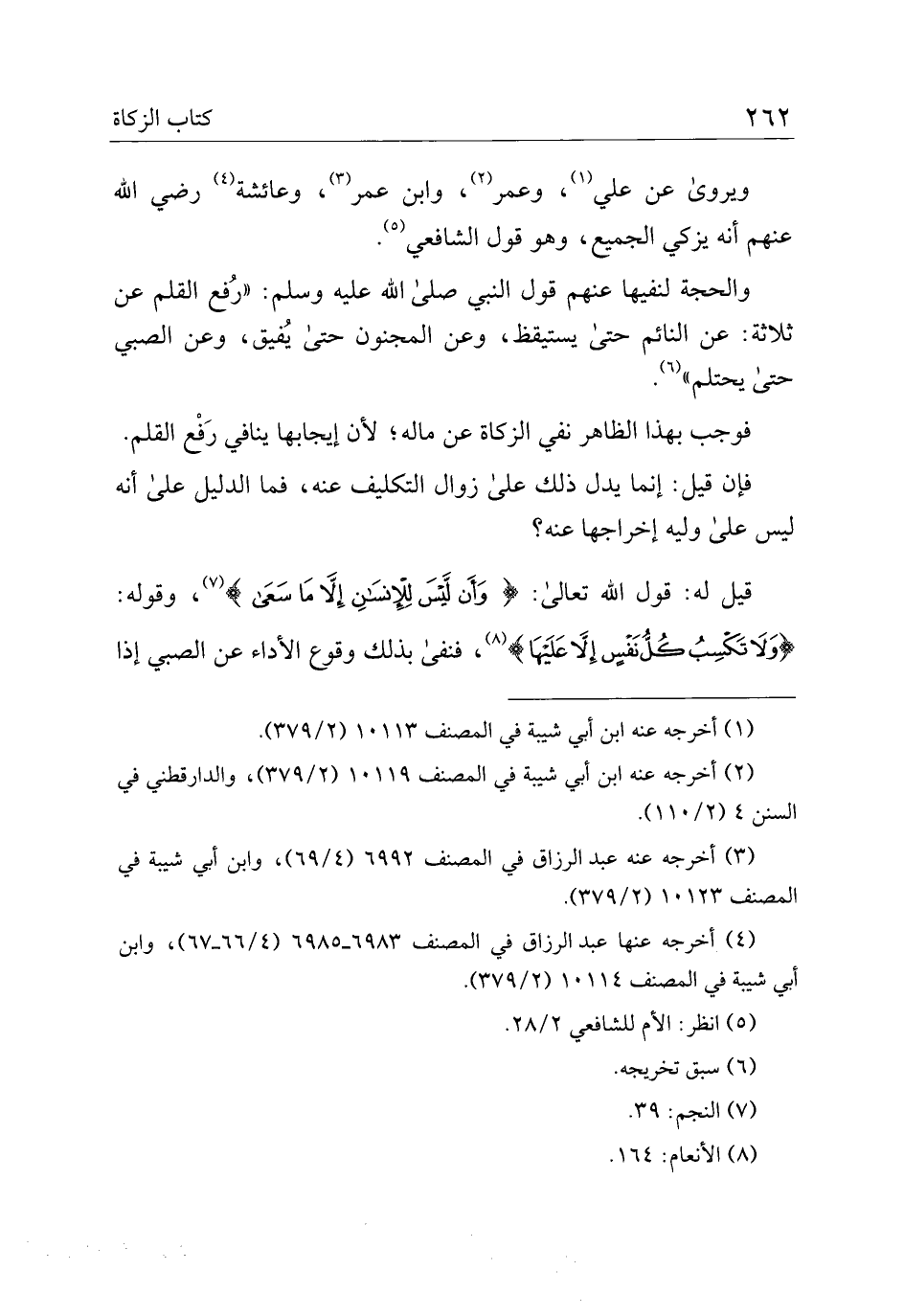 فوجب بهذا الظاهر نفي الزكاة عن ماله؛ لأن إيجابها ينافي رفع القلم