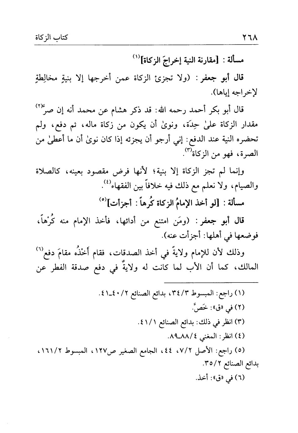 قال أبو جعفر: (ولا تجزئ الزكاة عمن أخرجها إلا بنية مخالطة لإخراجه إياها).