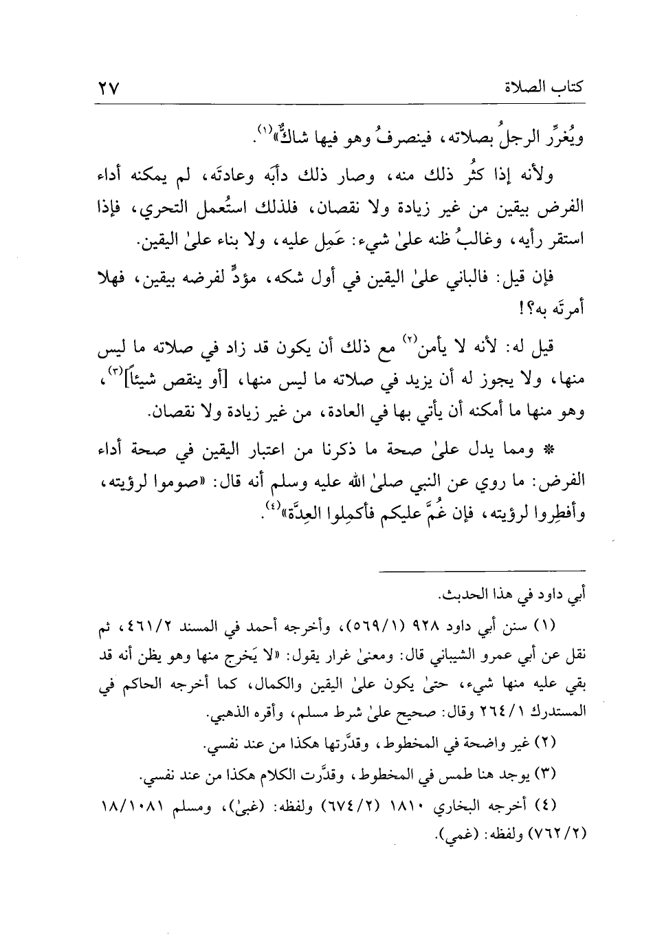 ويغرر الرجل بصلاته، فينصرف وهو فيها شاك".