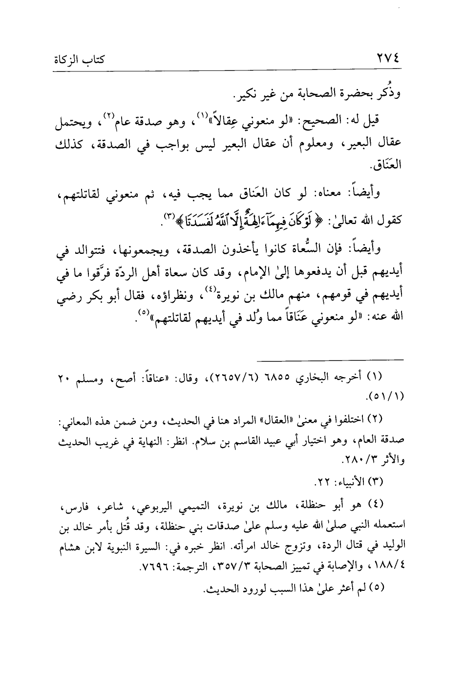 وأيضًا: فإن السعاة كانوا يأخذون الصدقة، ويجمعونها، فتتوالد في أيديهم قبل أن يدفعوها إلى الإمام، وقد كان سعاة أهل الردة فرقوا ما في أيديهم في قومهم، منهم مالك بن نويرة، ونظراؤهن فقال أبو بكر رضي الله عنه: "لو منعوني عناقًا مما ولد في أيديهم لقاتلتهم".
