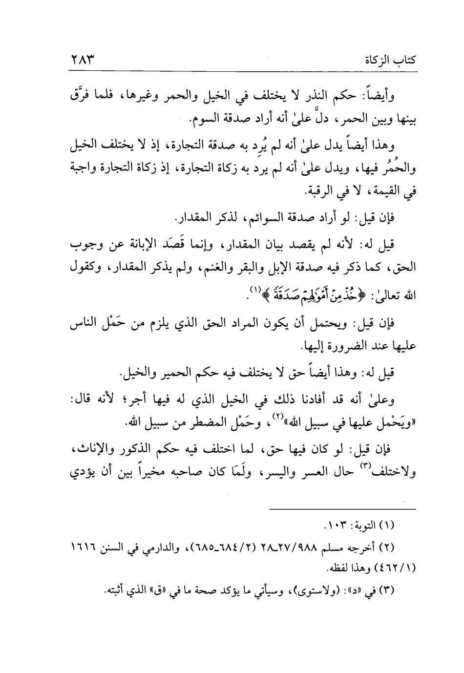 وأيضًا: حكم النذر لا يختلف في الخيل والحمر وغيرهان فلما فرق بينها وبين الحمر، در على أنه أراد صدقة السوم.