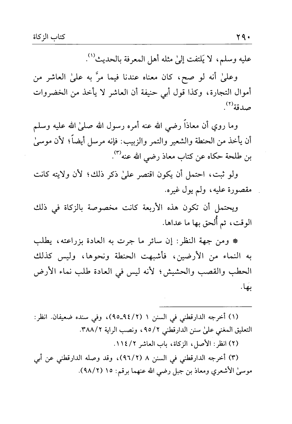 وما روي أن معاذًا رضي الله عنه أمره رسول الله صلى الله عليه وسلم أن يأخذ من الحنطة والشعير والتمر والزبيب: فإنه مرسل أيضًا؛ لأن موسى بن طلحة حكاه عن كتاب معاذ رضي الله عنه.
