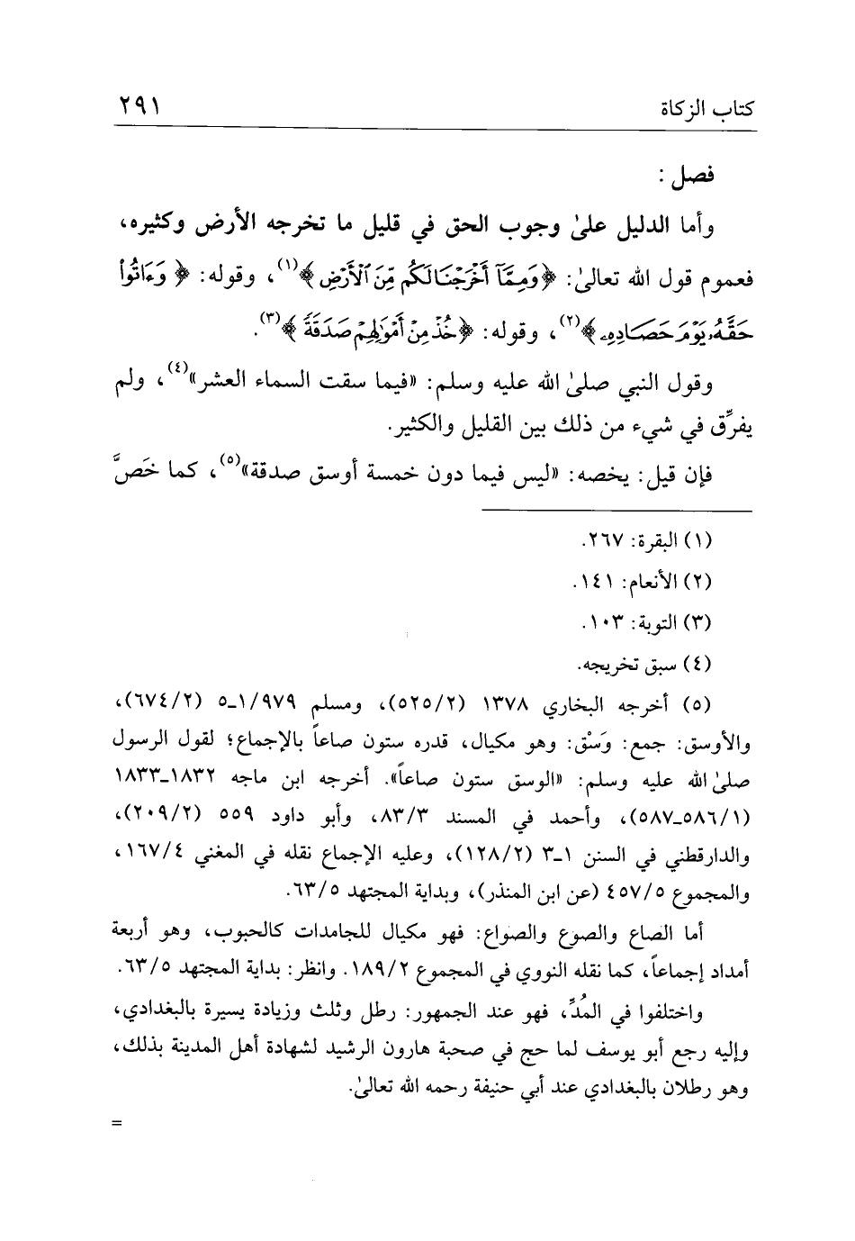وقول النبي صلى الله عليه وسلم: "فيما سقت السماء العشر"، ولم يفرق في شيء من ذلك بين القليل والكثير.