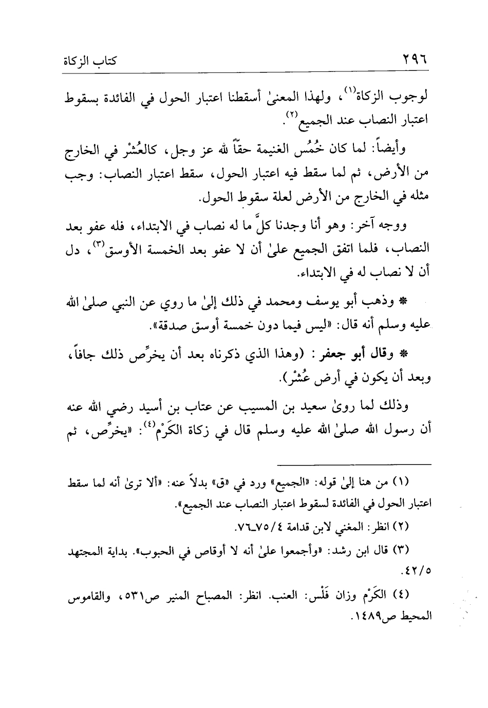 وأيضًا لما كان خمس الغنيمة حقًا لله عز وجل، كالعشر في الخارج من الأرض، ثم لم سقط فيه اعتبار الحول، سقط اعتبار النصاب: وجب مثله في الخارج من الأرض لعلة سقوط الحول.