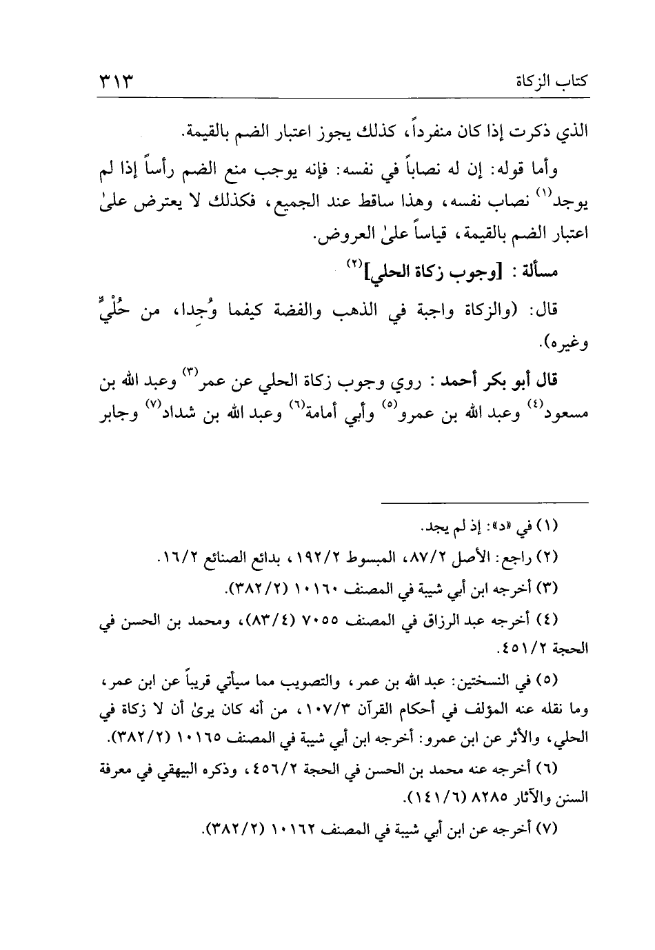قال أبو بكر أحمد: روي وجوب زكاة الحلي عن عمر وعبد الله بن مسعود وعبد الله بن عمرو وأبي أمامة وعبد الله بن شداد وجابر