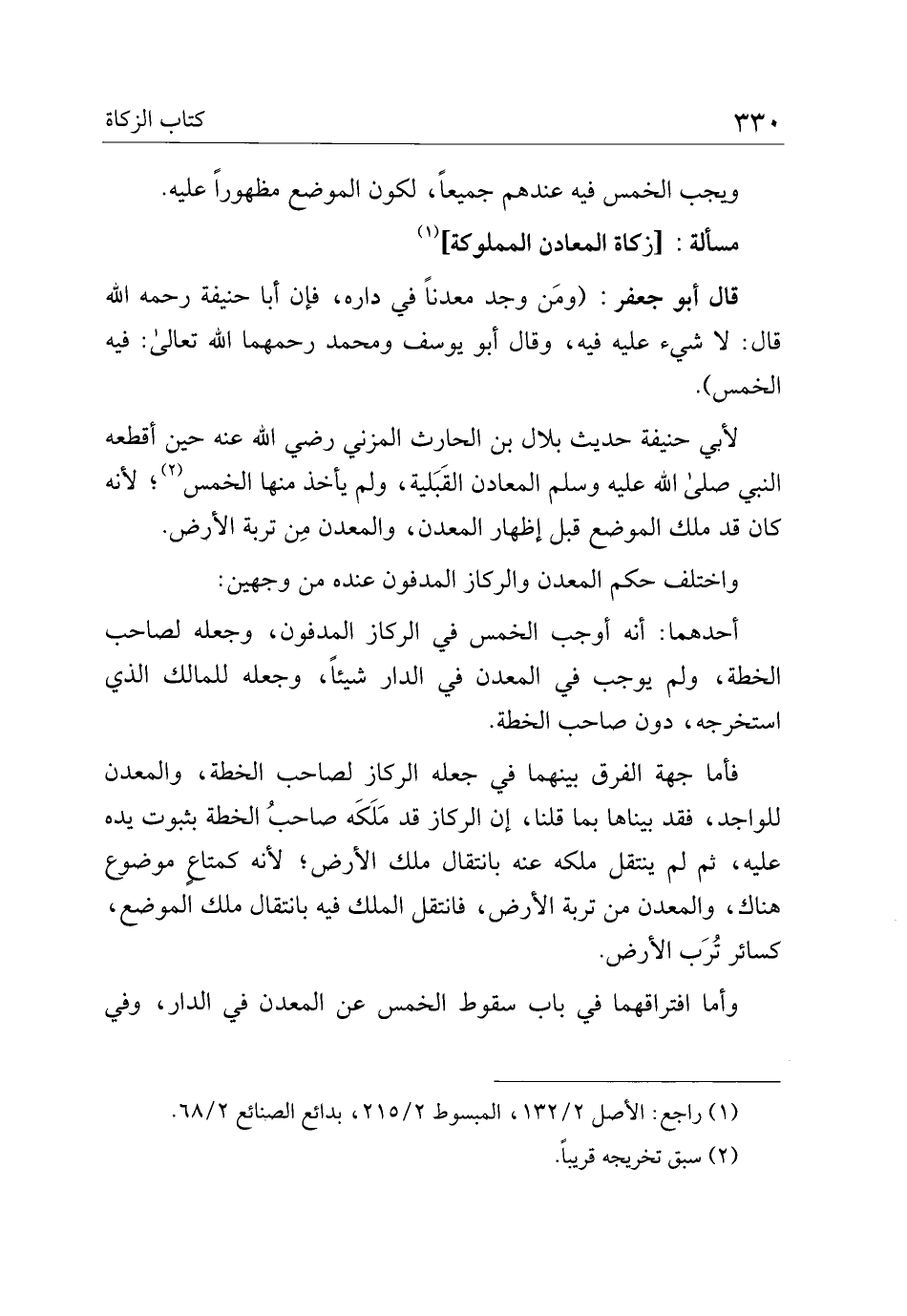 قال أبو جعفر: (ومن وجد معدنًا في داره، فإن أبا حنيفة رحمه الله قال: لا شيء عليه فيه، وقال أبو يوسف ومحمد رحمهما الله تعالى: فيه الخمس).