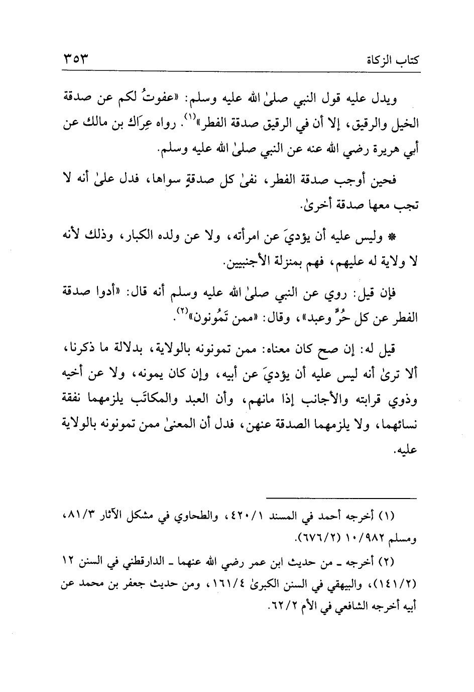 ويدل عليه قول النبي صلى الله عليه وسلم: "عفوت لكم عن صدقة الخيل والرقيق، إلا أن في الرقيق صدقة الفطر". رواه عراك بن مالك عن أبي هريرة رضي الله عنه عن النبي صلى الله عليه وسلم.