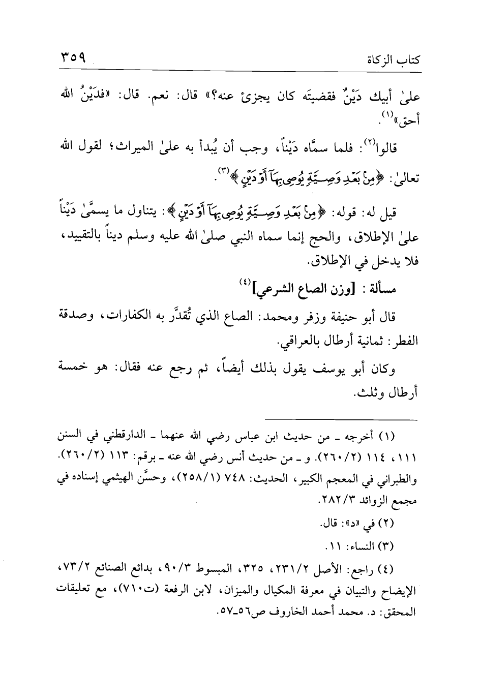 مسألة: [وزن الصاع الشرعي]
