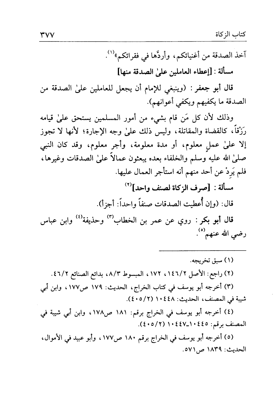 قال أبو جعفر: (وينبغي للإمام أن يجعل للعاملين على الصدقة من الصدقة ما يكفيهم ويكفي أعوانهم).
