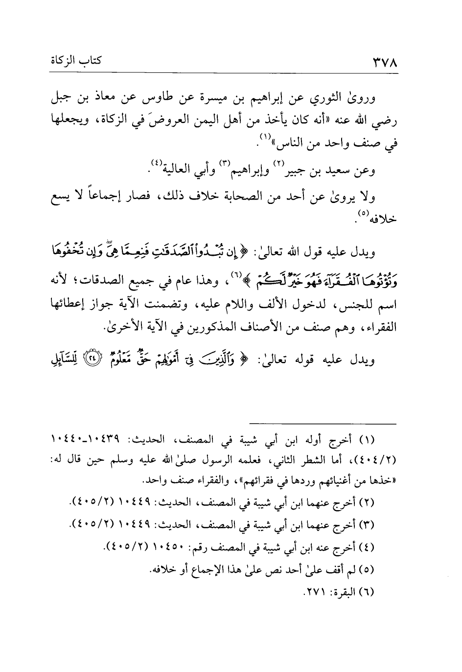 ويدل عليه قول الله تعالى: {إن تبدوا الصدقات فنعما هي وإن تخفوها وتؤتوها الفقراء فهو خير لكم}، وهذا عام في جميع الصدقات؛ لأنه اسم للجنس، لدخول الألف واللام عليه، وتضمنت الآية جواز إعطائها الفقراء، وهم صنف من الأصناف المذكورين في الآية الأخرى.
