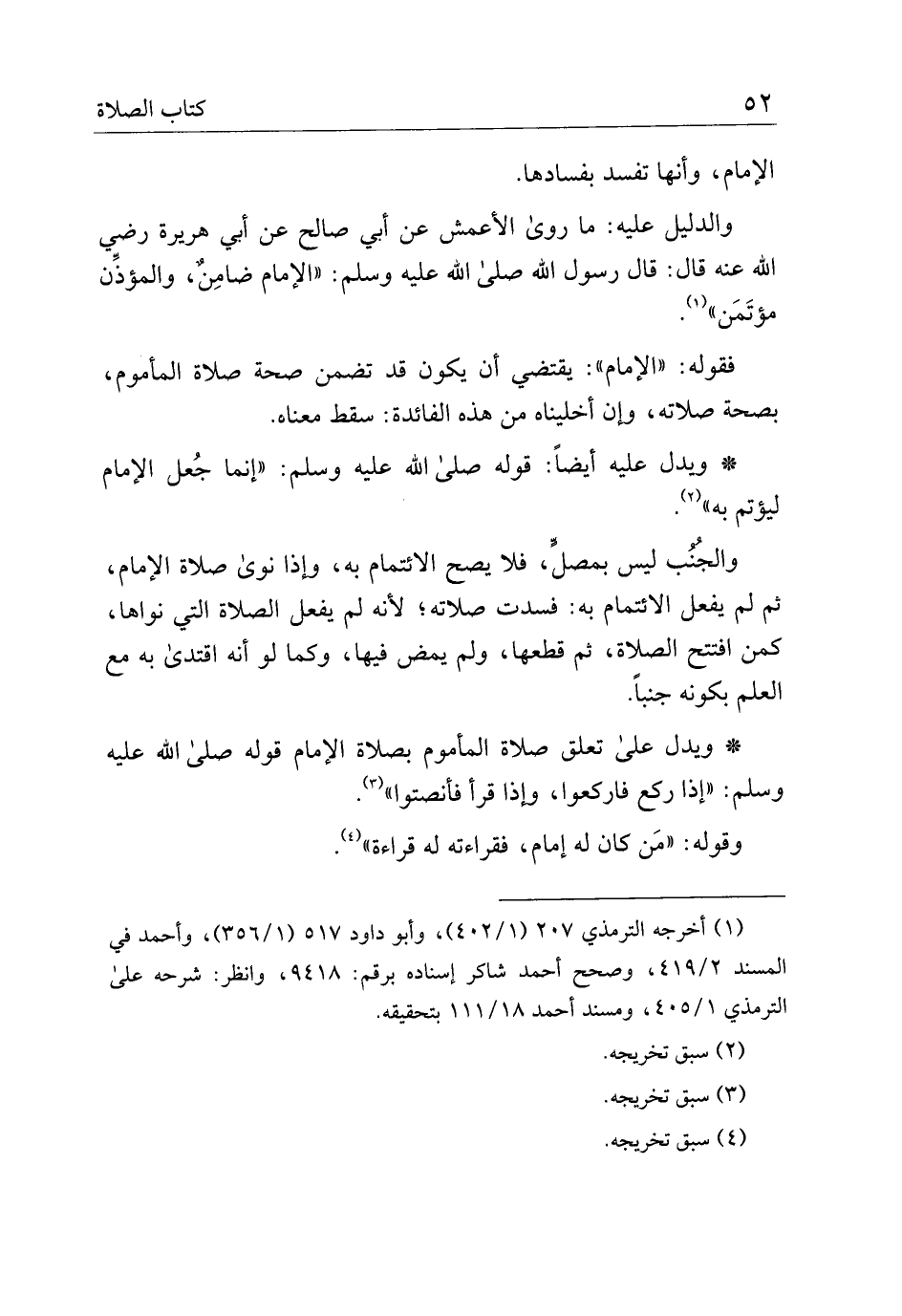 فقوله: "الإمام": يقتضي أن يكون قد تضمن صحة صلاة المأموم، بصحة صلاته، وإن أخليناه من هذه الفائدة: سقط معناه.