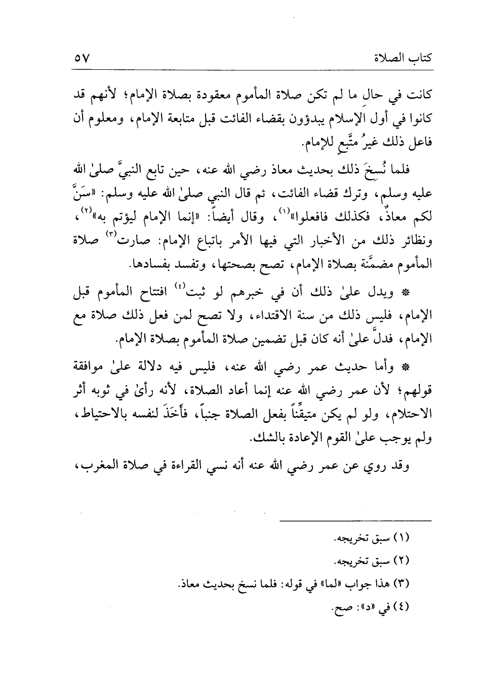 * ويدل على ذلك أن في خبرهم لو ثبت افتتاح المأموم قبل الإمام، فليس ذلك من سنة الاقتداء، ولا تصح لمن فعل ذلك صلاة مع الإمام، فدل على أنه كان قبل تضمين صلاة المأموم بصلاة الإمام.