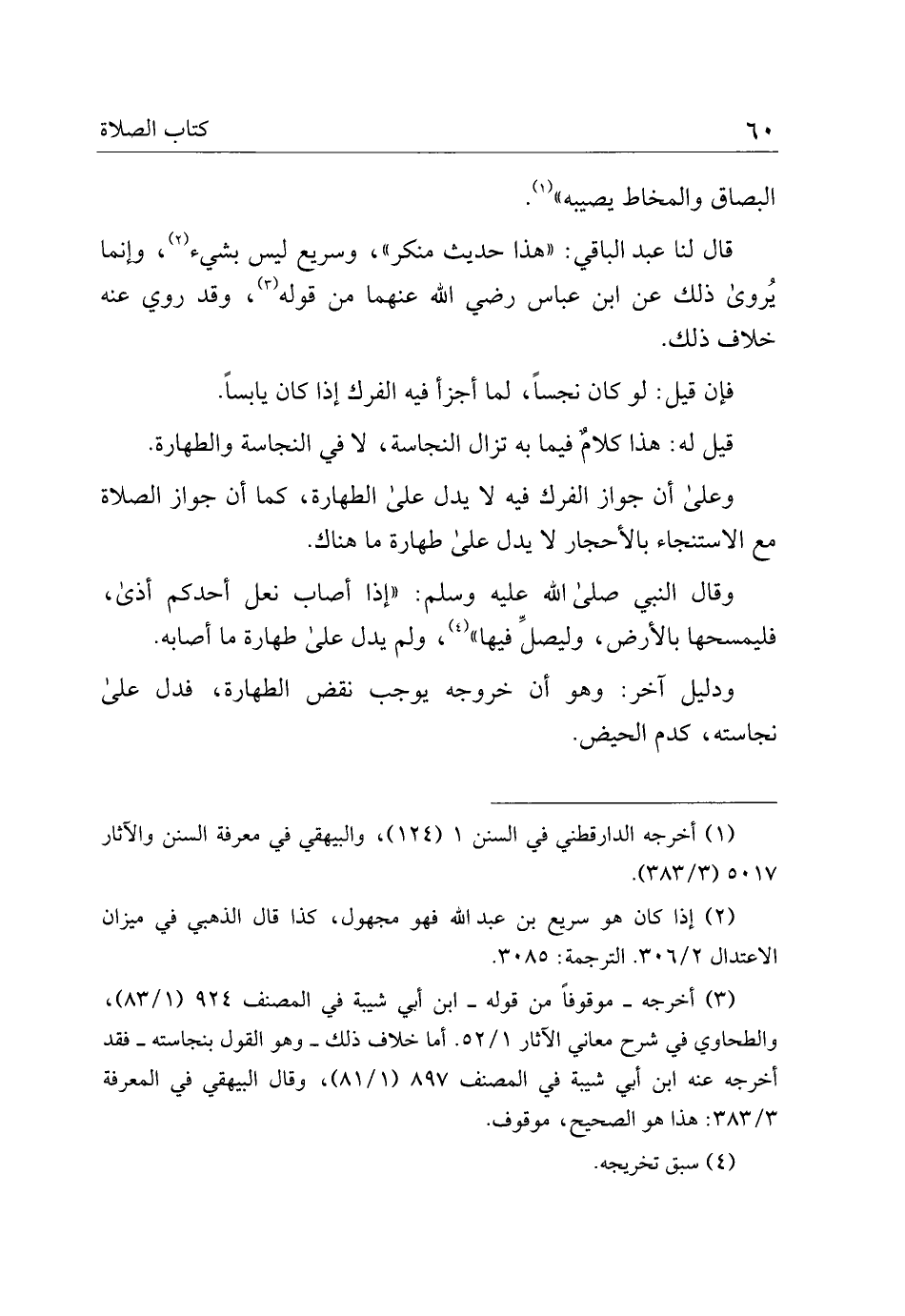 قال لنا عبد الباقي: "هذا حديث منكر"، وسريع ليس بشيء، وإنما يروي ذلك عن ابن عباس رضي الله عنهما من قوله، وقد روي عنه خلاف ذلك.