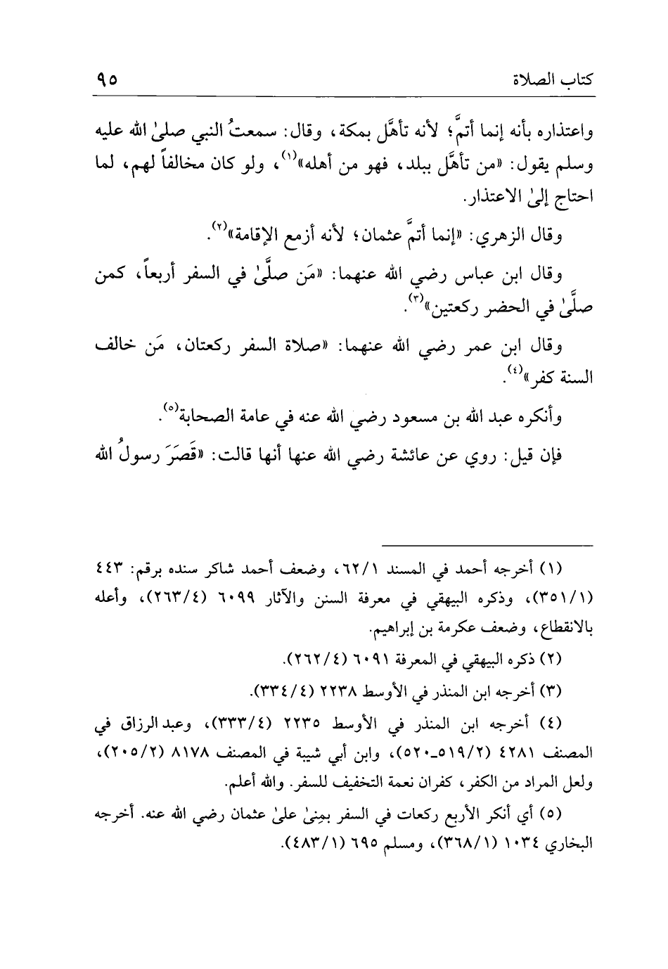 وقال ابن عمر رضي الله عنهما: "صلاة السفر ركعتان، من مخالف السنة كفر".