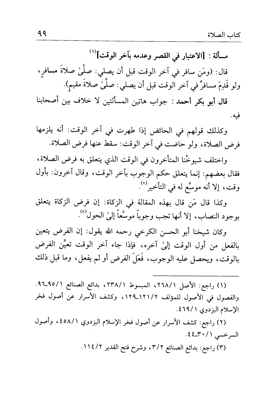 قال: (ومن سافر في آخر الوقت قبل أن يصلي: صلى صلاة مسافر، ولو قدم مسافر في آخر الوقت قبل أن يصلي: صلى صلا مقيم).