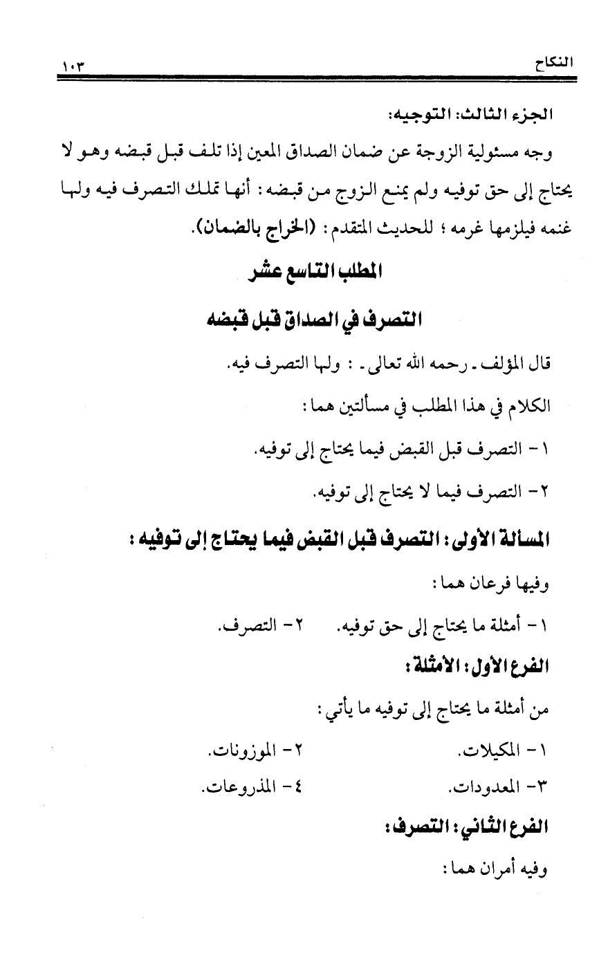 المطلب التاسع عشر التصرف في الصداق قبل قبضه