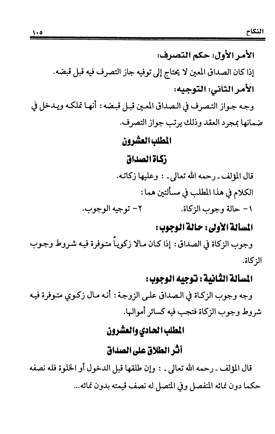 وجوب الزكاة في الصداق: إذا كان مالا زكوياً متوفرة فيه شروط وجوب الزكاة.
