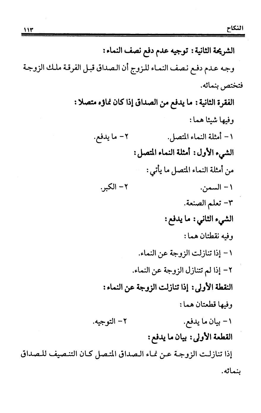 الفقرة الثانية: ما يدفع من الصداق إذا كان نماوه متصلا: