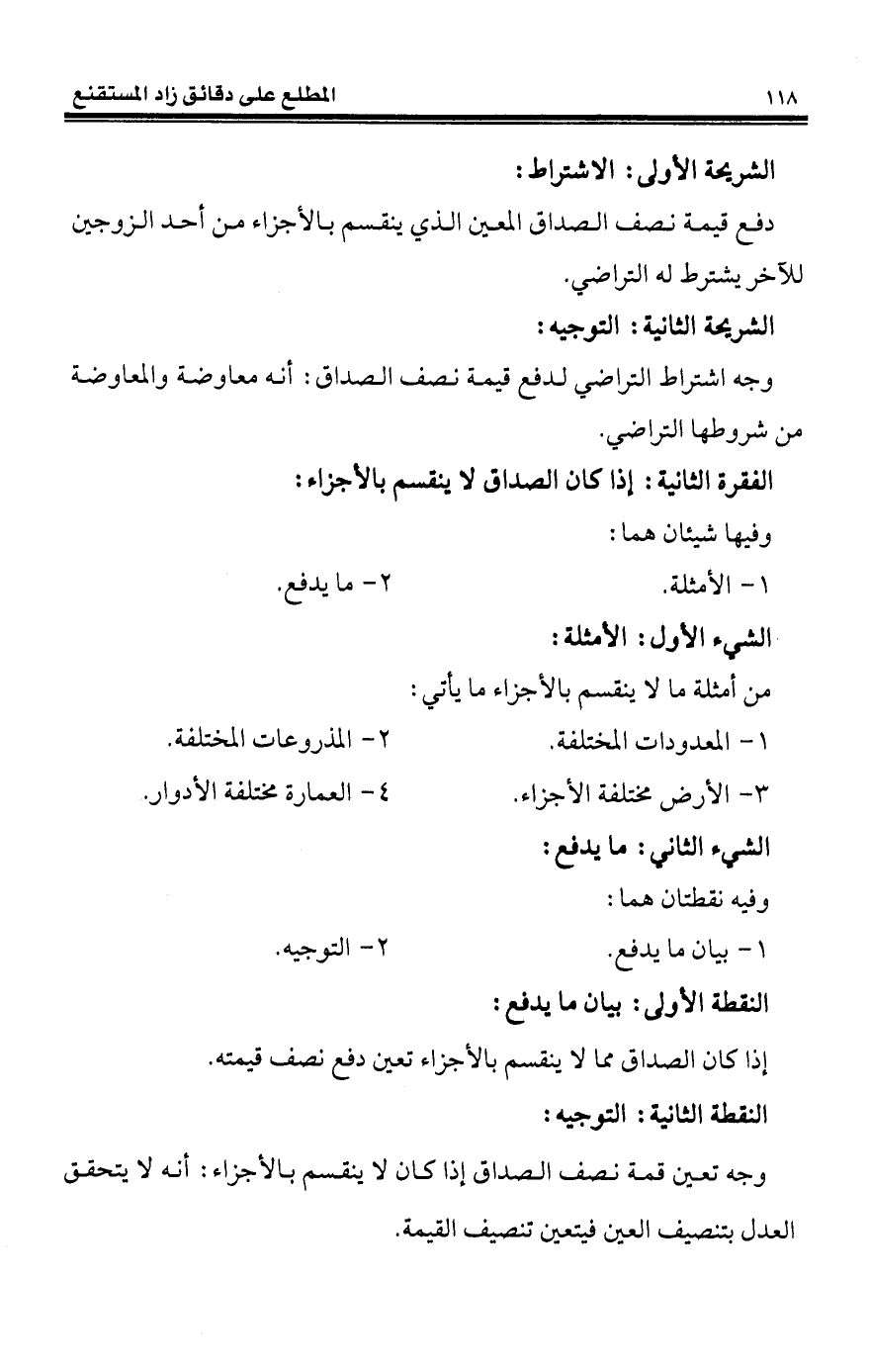 الفقرة الثانية: إذا كان الصداق لا ينقسم بالأجزاء: