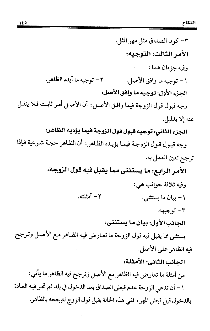 الجزء الثاني: توجيه قبول قول الزوجة فيما يؤديه الظاهر: