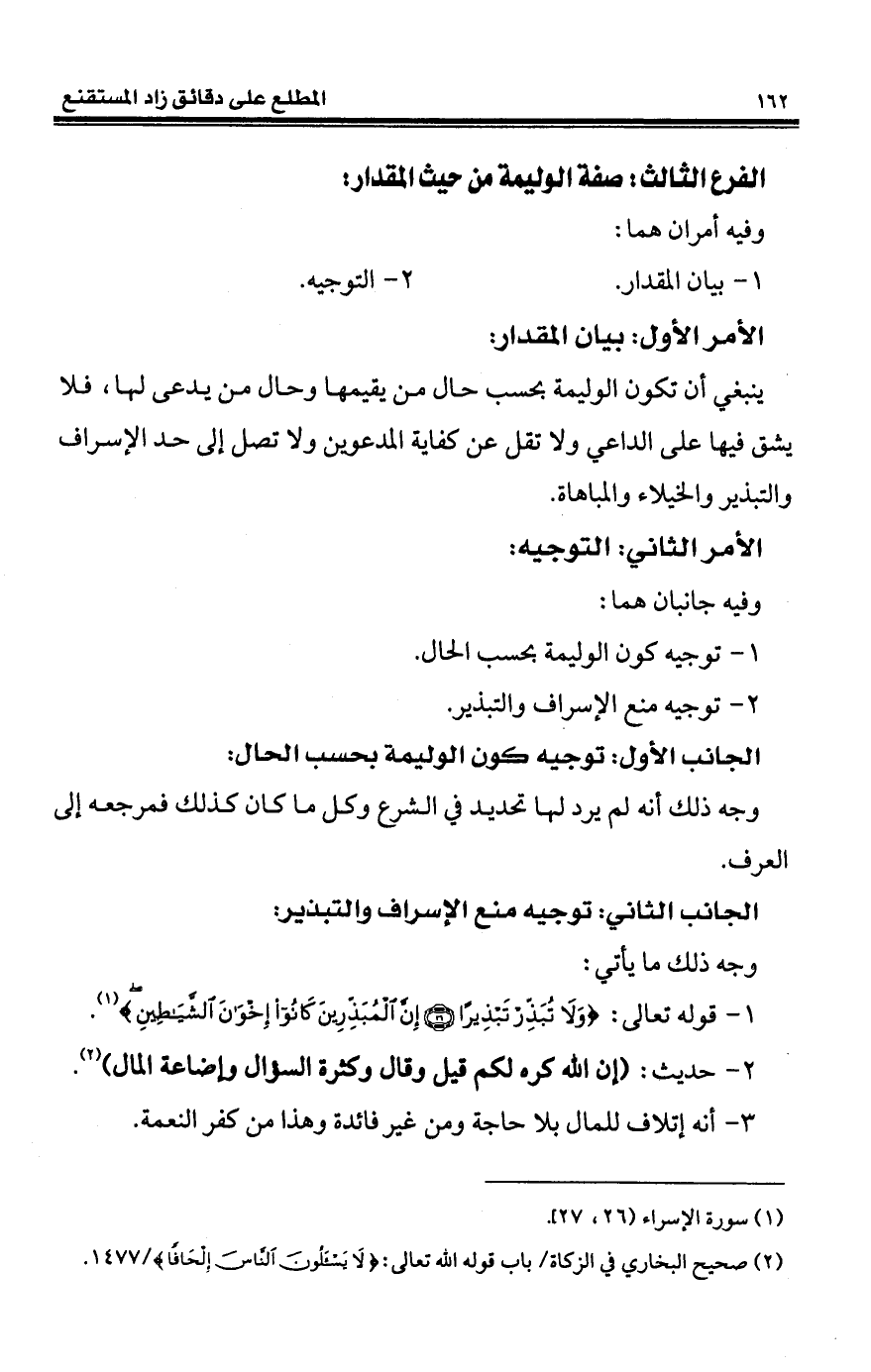 1 - توجيه كون الوليمة بحسب الحال.