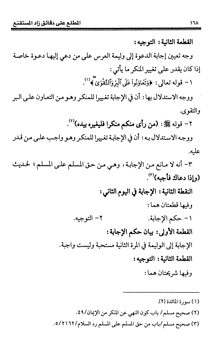وجه تعيين إجابة الدعوة إلى وليمة العرس على من دعي إليها دعوة خاصة إذا كان يقدر على تغيير المنكر ما يأتي: