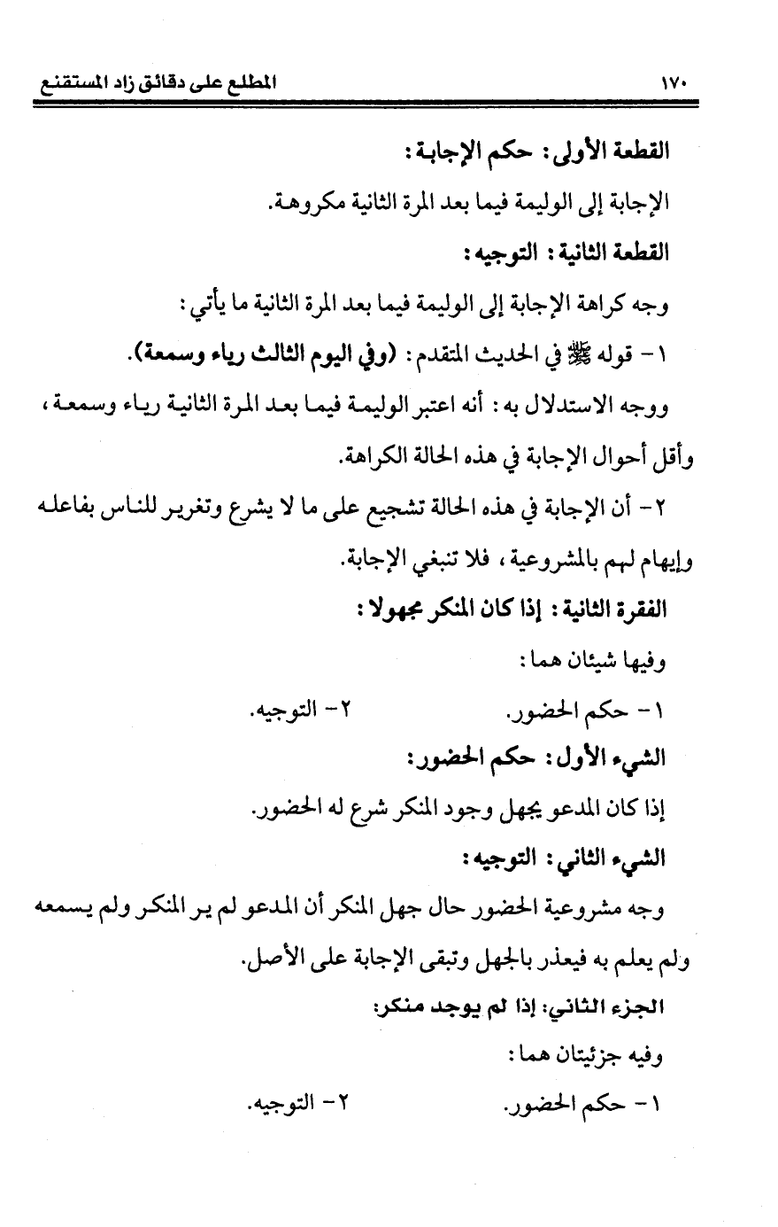 وجه كراهة الإجابة إلى الوليمة فيما بعد المرة الثانية ما يأتي:
