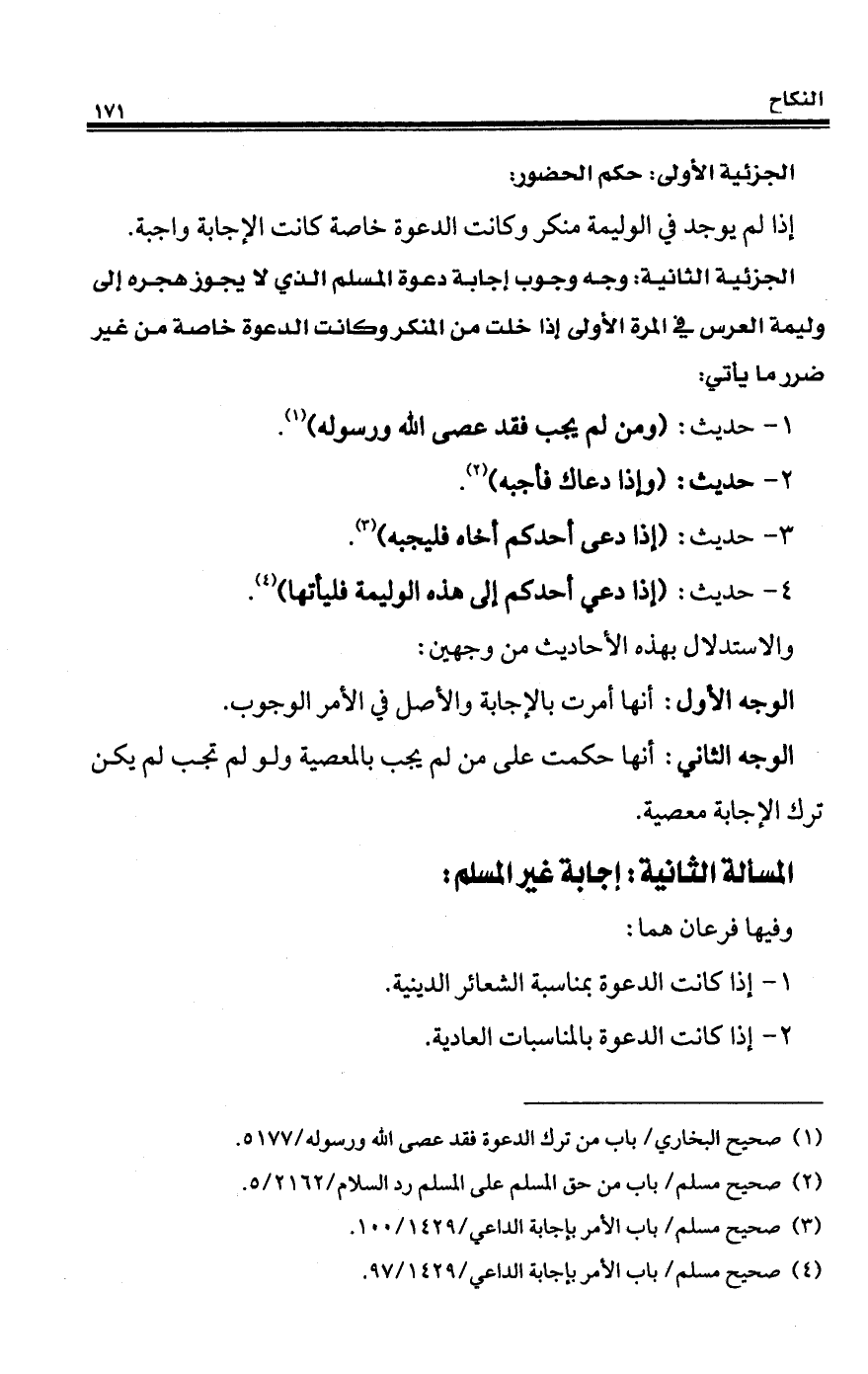 (¬4) صحيح مسلم/ باب الأمر بإجابة الداعى/ 1429/ 97.