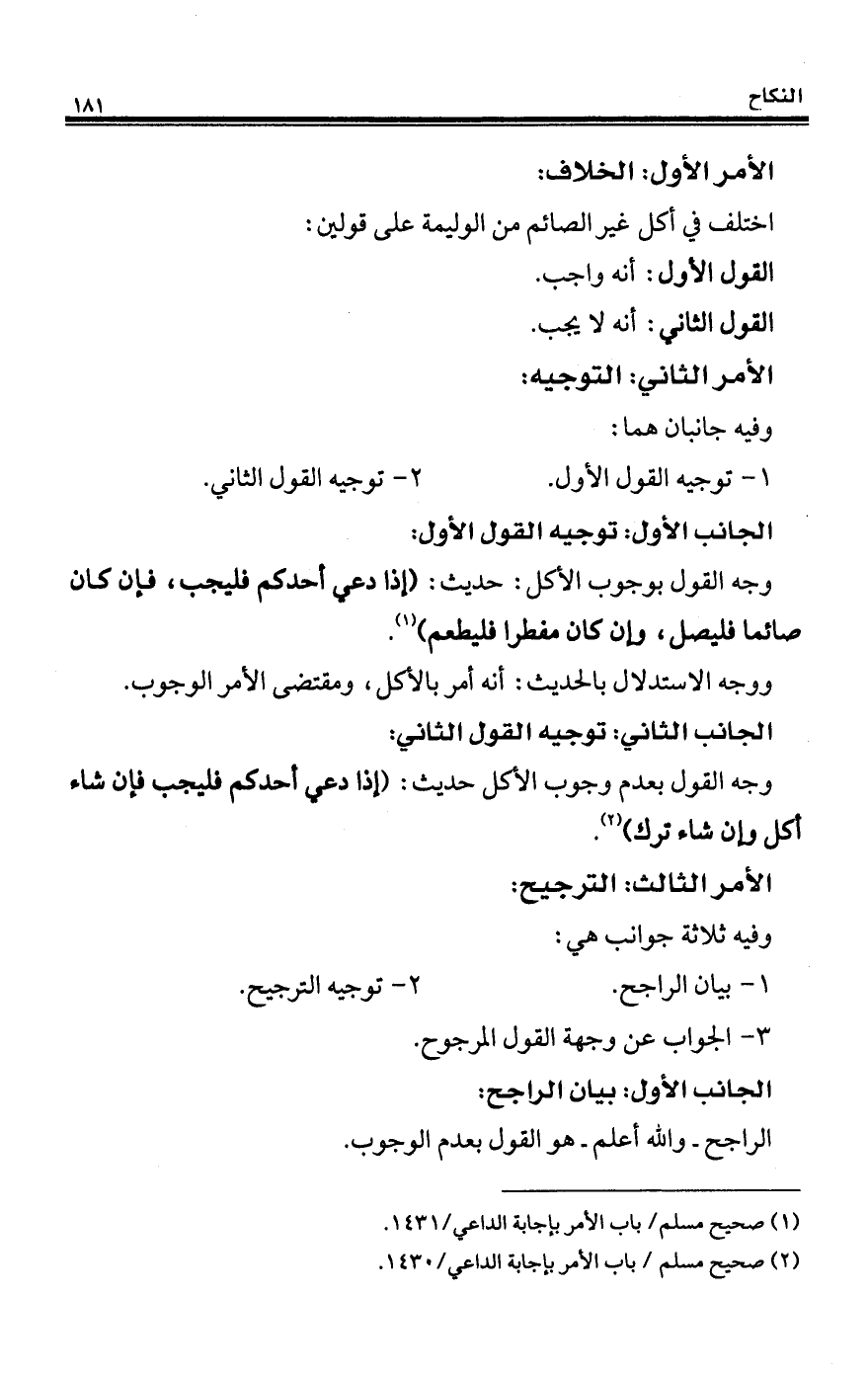 (¬1) صحيح مسلم/ باب الأمر بإجابة الداعي/ 1431.