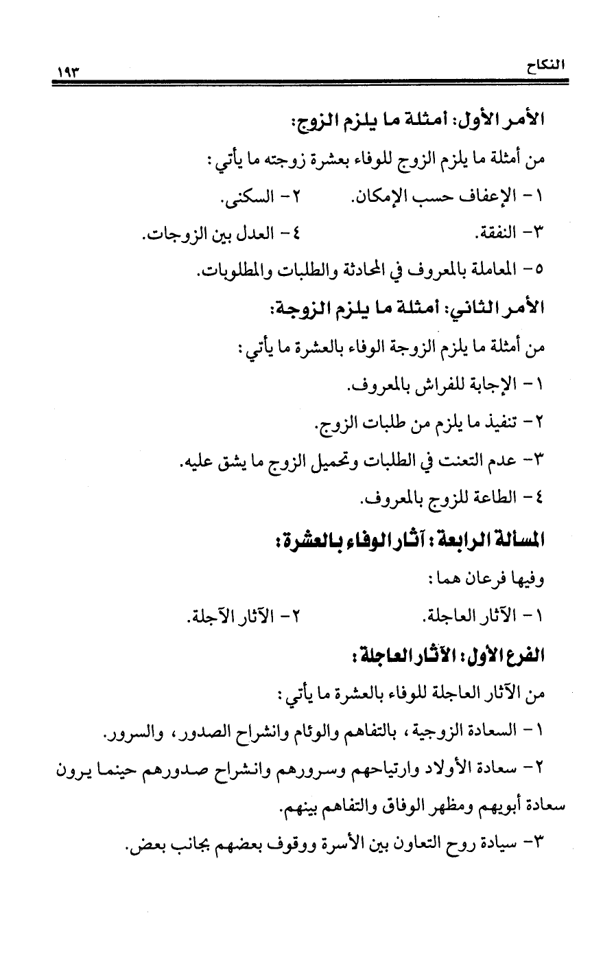 من الآثار العاجلة للوفاء بالعشرة ما يأتي: