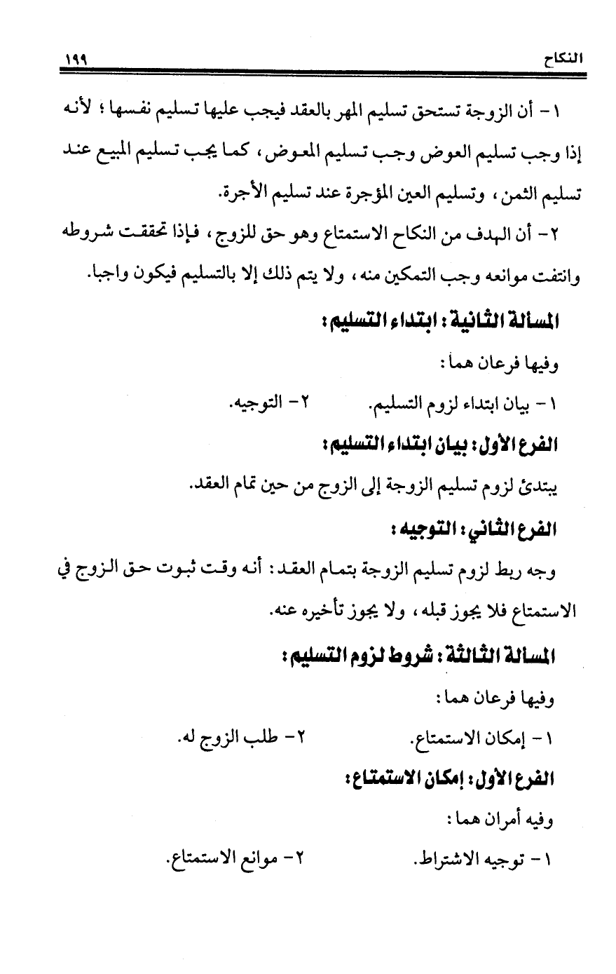 2 - أن الهدف من النكاح الاستمتاع وهو حق للزوج، فإذا تحققت شروطه وانتفت موانعه وجب التمكين منه، ولا يتم ذلك إلا بالتسليم فيكون واجبا.