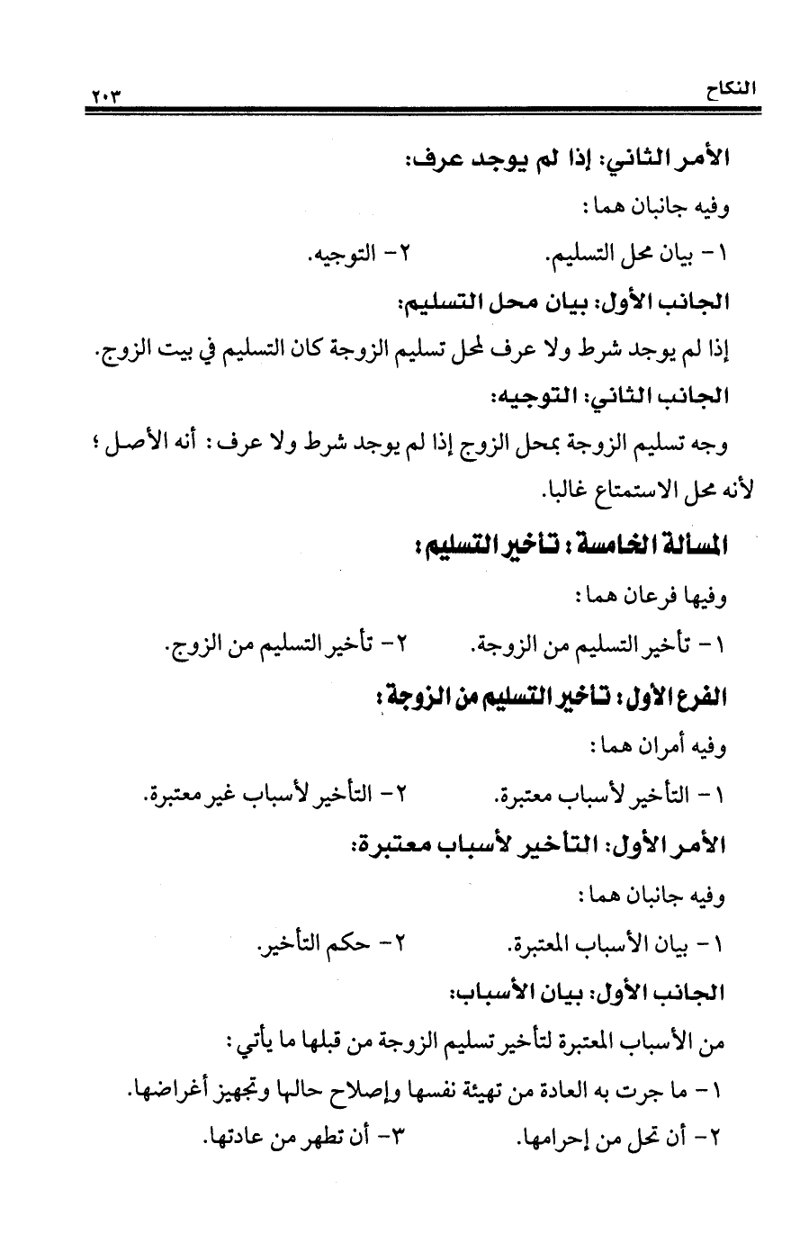 من الأسباب المعتبرة لتأخير تسليم الزوجة من قبلها ما يأتي: