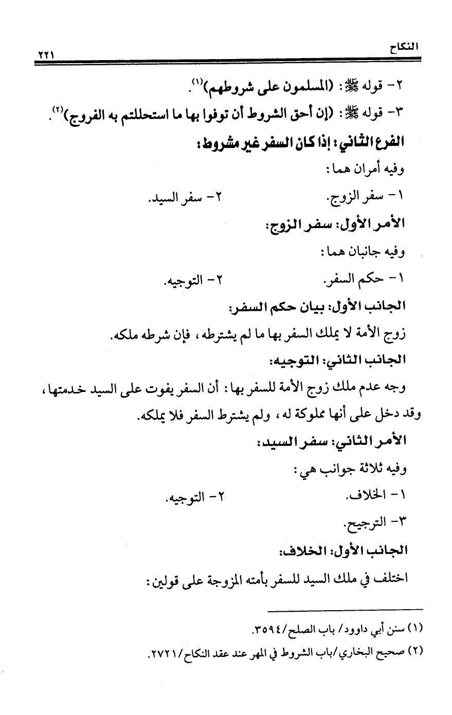 زوج الأمة لا يملك السفر بها ما لم يشترطه، فإن شرطه ملكه.