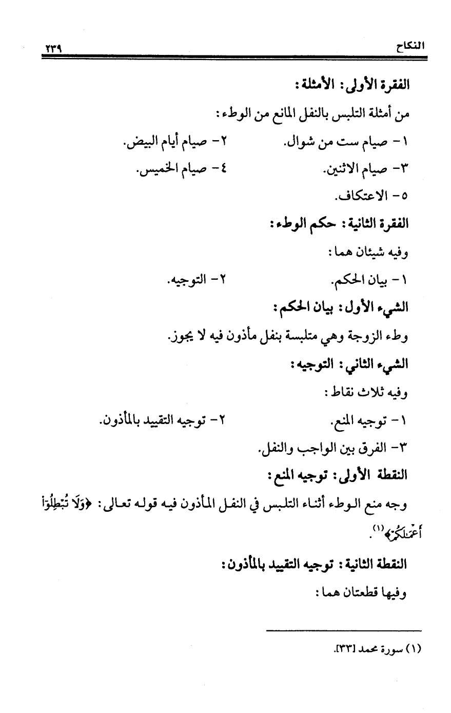 وجه منع الوطء أثناء التلبس في النفل المأذون فيه قوله تعالى: {وَلَا تُبْطِلُوا أَعْمَالَكُمْ} (¬1).