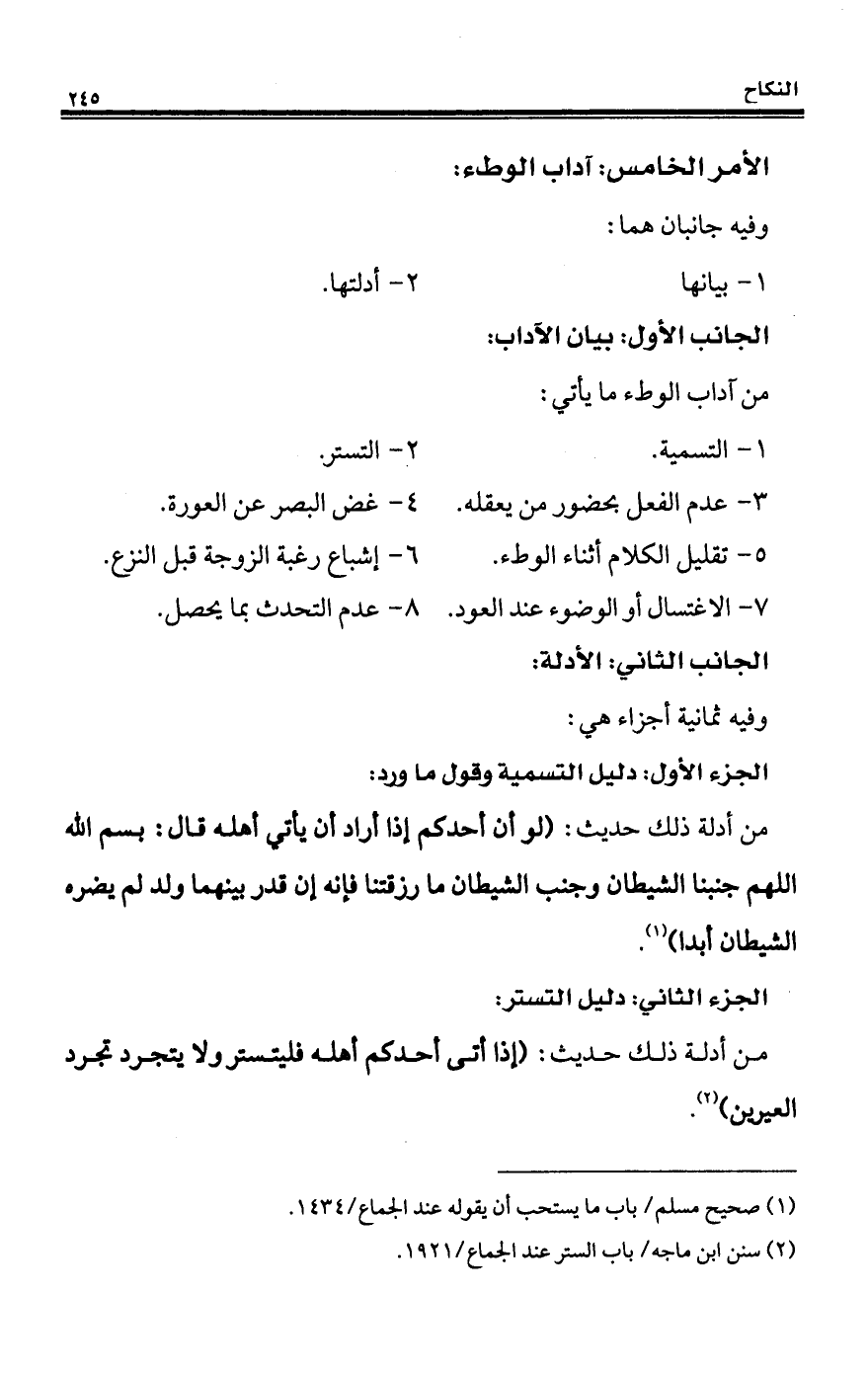 (¬1) صحيح مسلم/ باب ما يستحب أن يقوله عند الجماع/1434.