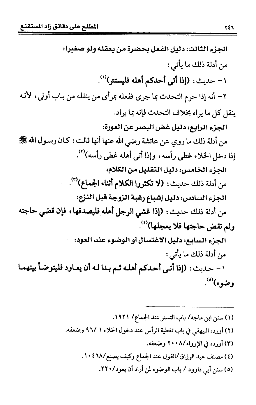 الجزء السابع: دليل الاغتسال أو الوضوء عند العود: