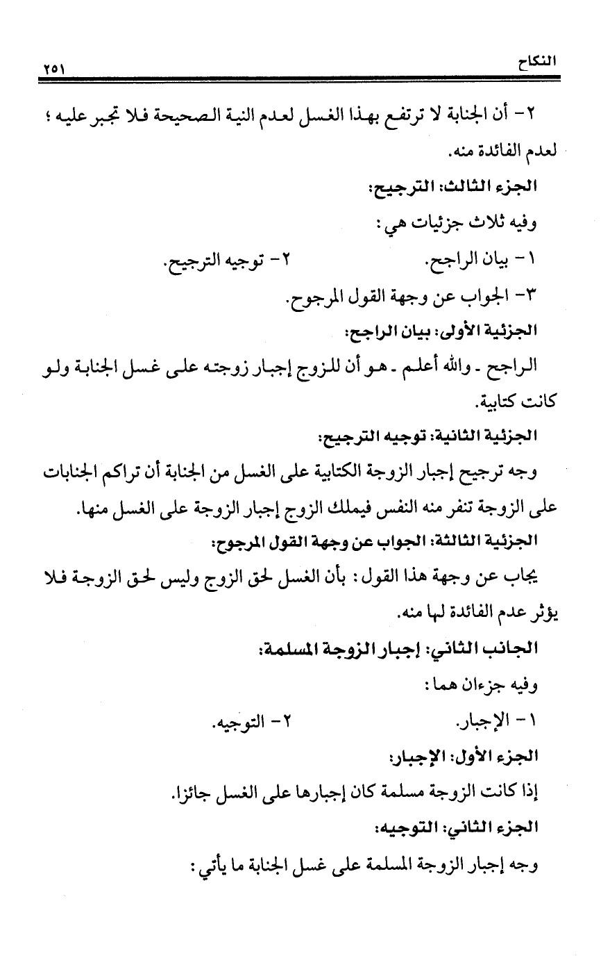 وجه ترجيح إجبار الزوجة الكتابية على الغسل من الجنابة أن تراكم الجنابات على الزوجة تنفر منه النفس فيملك الزوج إجبار الزوجة على الغسل منها.