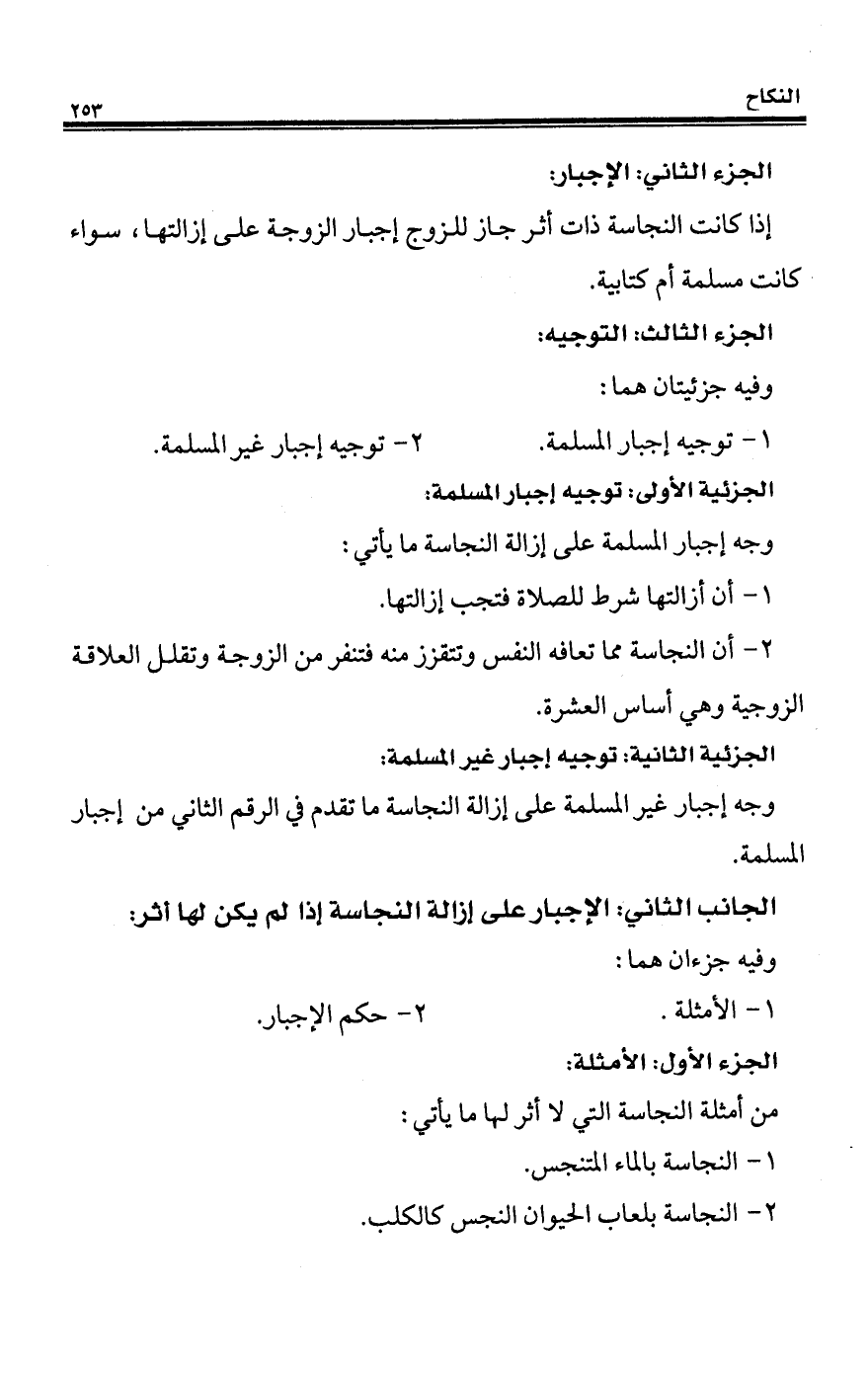 إذا كانت النجاسة ذات أثر جاز للزوج إجبار الزوجة على إزالتها، سواء كانت مسلمة أم كتابية.