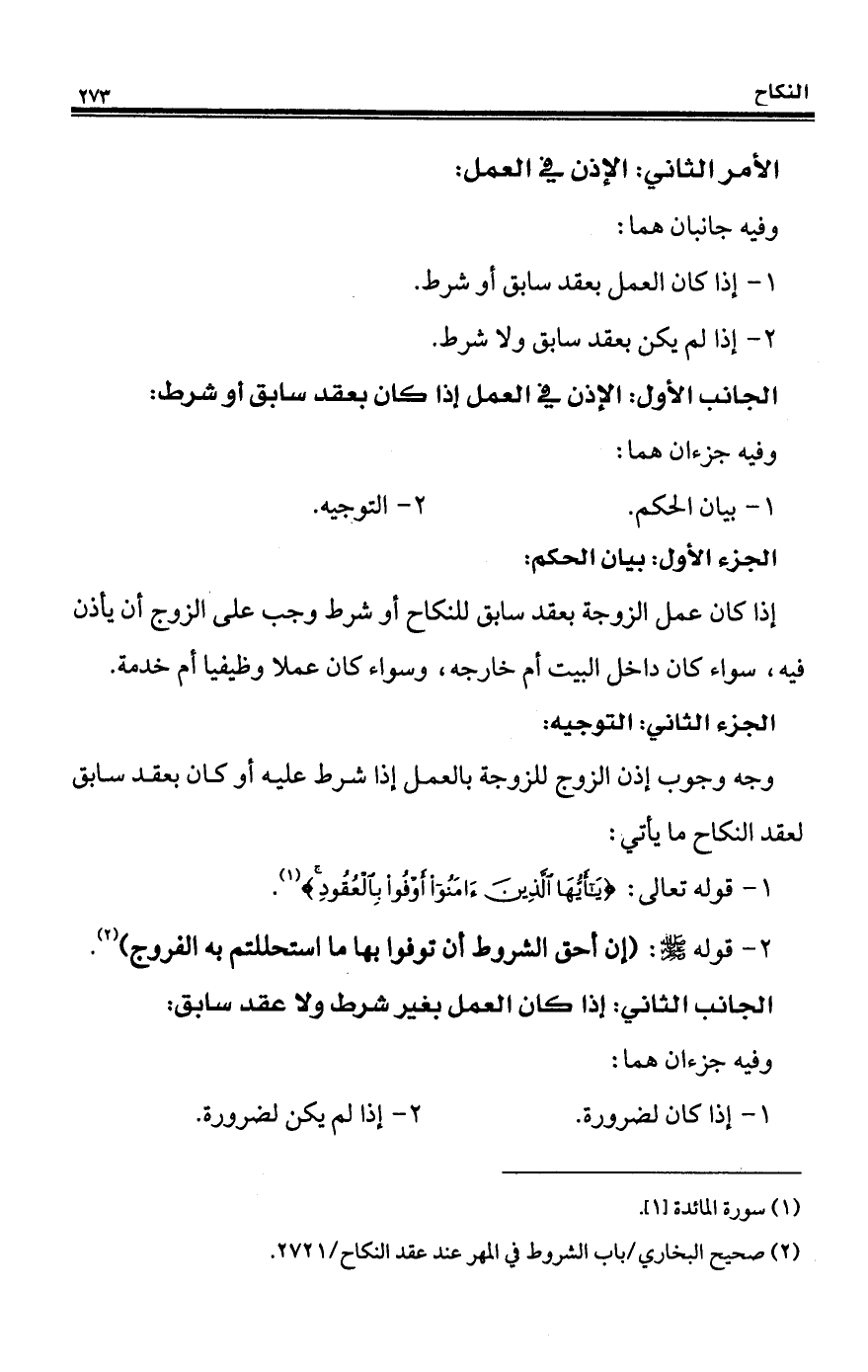 الأمر الثاني: الإذن في العمل: