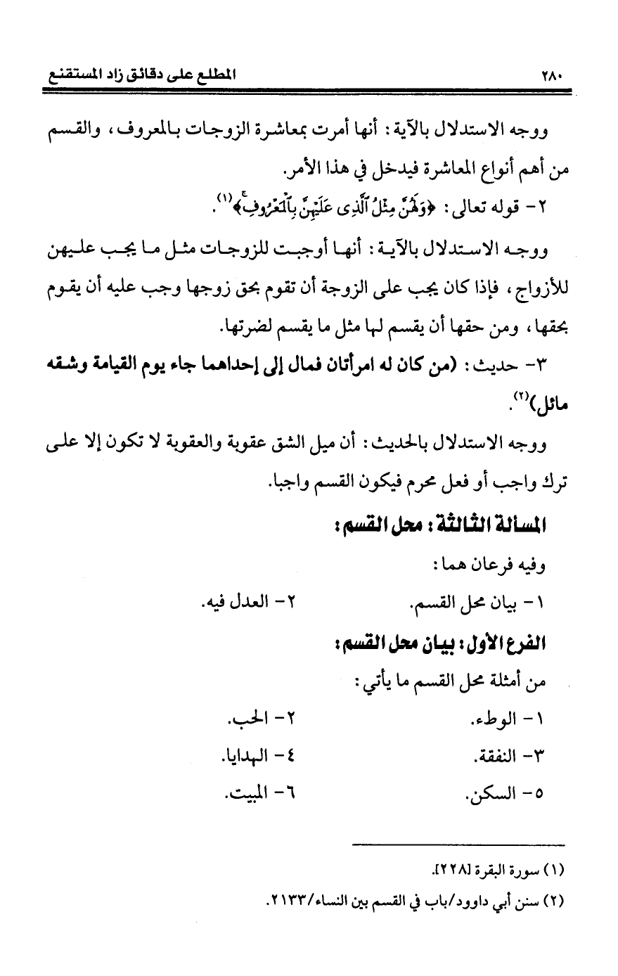 (¬2) سنن أبي داوود/ باب في القسم بين النساء/2133.