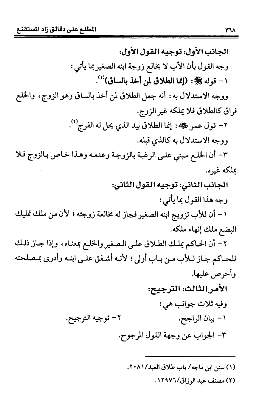 كتاب المطلع على دقائق زاد المستقنع «فقه الأسرة» (اسم الجزء: 2)