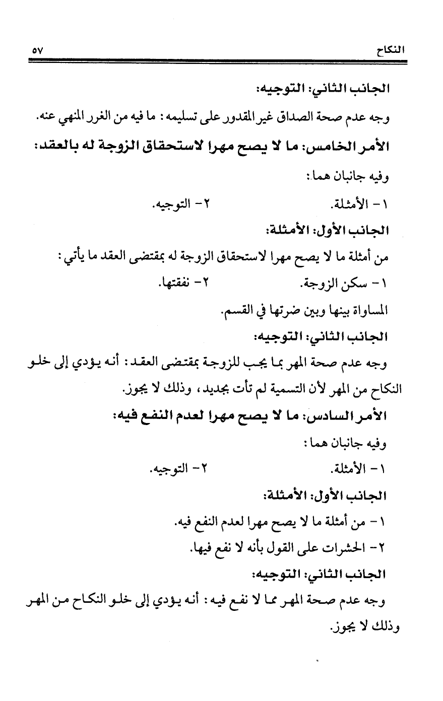 من أمثلة ما لا يصح مهرا لاستحقاق الزوجة له بمقتضى العقد ما يأتي: